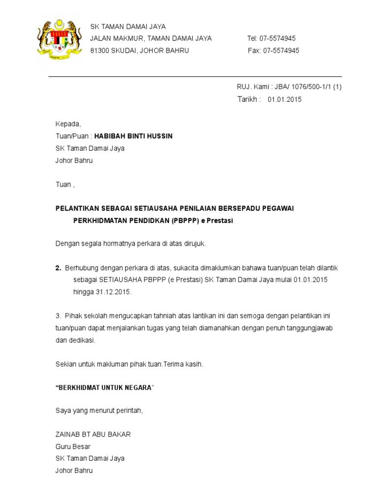 Contoh Surat Lantikan Guru Penyelaras Bestari By Tif_552Grant 03 Jul, 2022 Post a Comment Surat Lantikan Guru Ke Jawatan Khas Pdf Contoh Srt Lantikan Surat Pelantikan Contoh Surat Pelantikan Guru Perpustakaan Dan Media Orellnewsrtlett Makmal Komputer Sk Muhammad Saman 5 Surat Pelantikan Pengawas Ict 2017 Share No comments for "Contoh Surat Lantikan Guru Penyelaras Bestari"